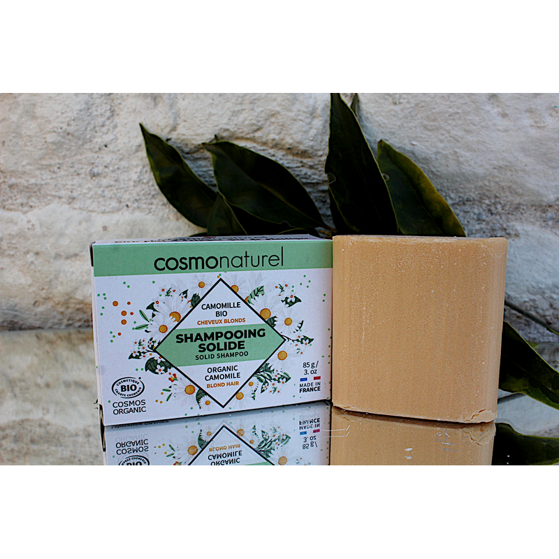 SHAMPOOING SOLIDE BIO à la camomille, spécifique cheveux blonds.