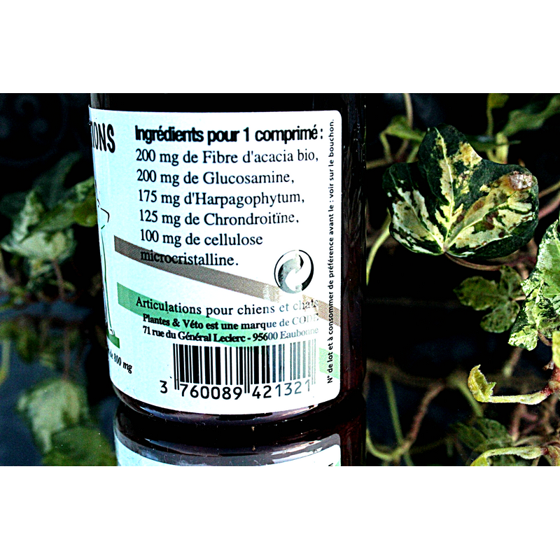 Ingrédients pour 1 comprimé : 200 mg de fibre d'acacia BIO, 200 mg de glocusamine, 175 mg d'Harpagophytum, 125 mg de chrondroitïne, 100 mg de cellulose microcristalline.