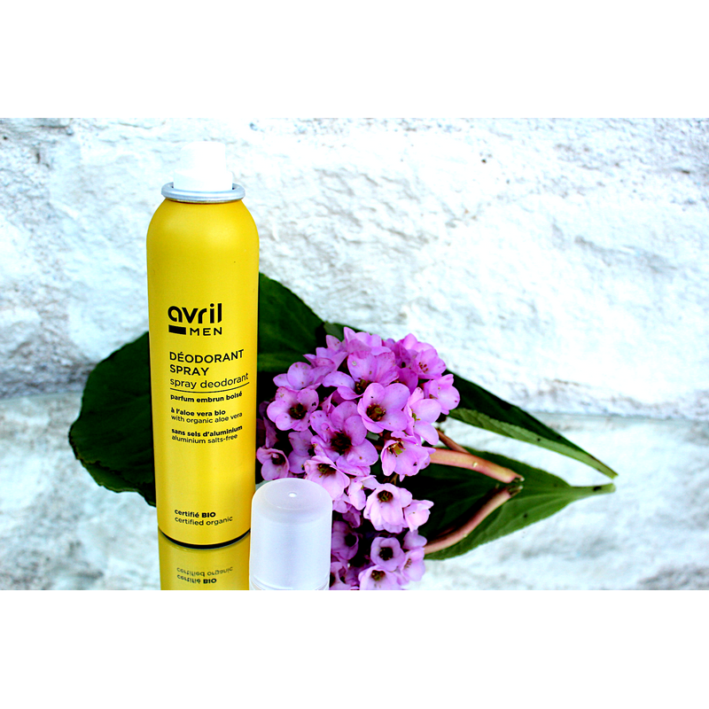 DEODORANT spray BIO pour homme, au parfum embrun boisé, doux grâce à l'Aloé Véra qu'il contient, et sans sels d'aluminium.