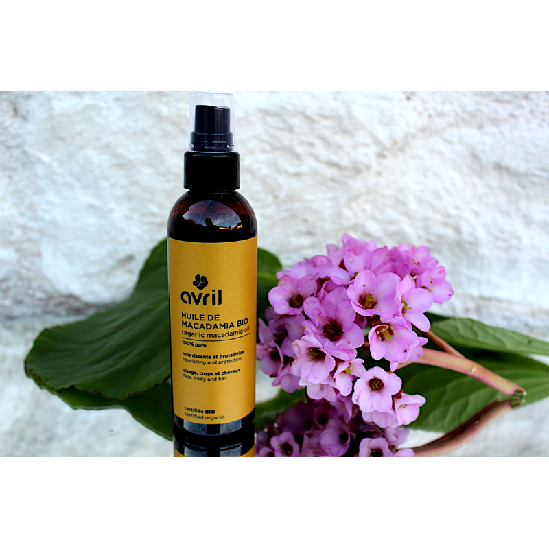 L'HUILE de MACADAMIA BIO, PURE et pressée à froid, nourrit et protège la peau sans en faire trop : pénètre facilement la peau, ne laisse pas de film gras !
