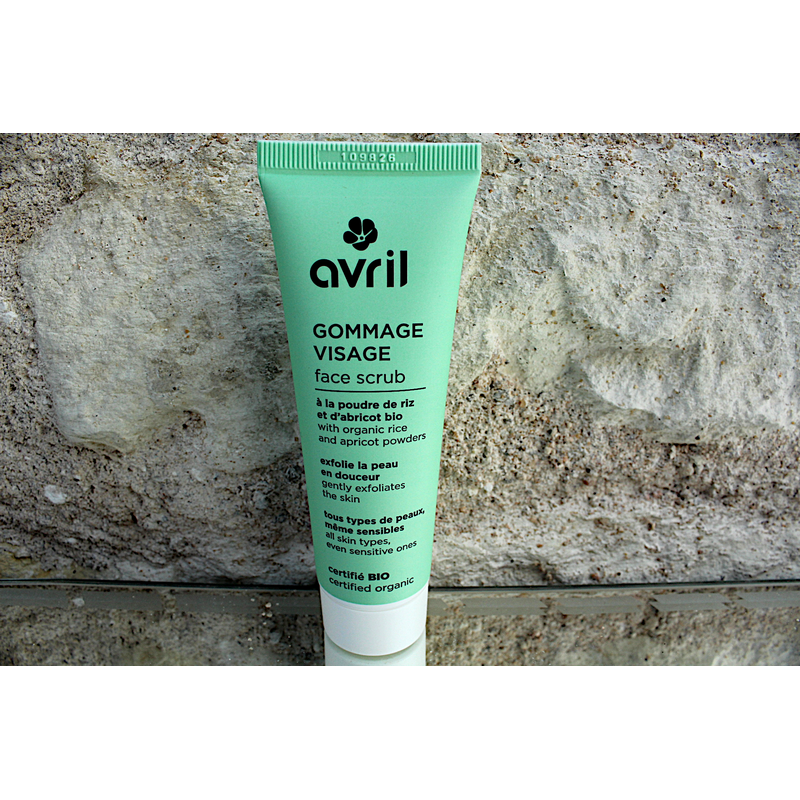 Gommage visage doux et non irritant, à la poudre de riz et de noyaux d'abricot BIO.