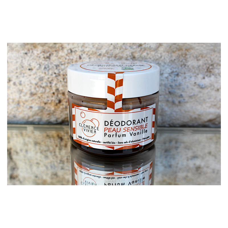 Sans sels d'aluminium, sans huiles essentielles, 100% d'origine naturelle et 0% pétrochimie, ce déodorant parfum naturel vanille est adapté aux peaux les plus sensibles, utilisable par toute la famille et pendant la grossesse et l'allaitement.