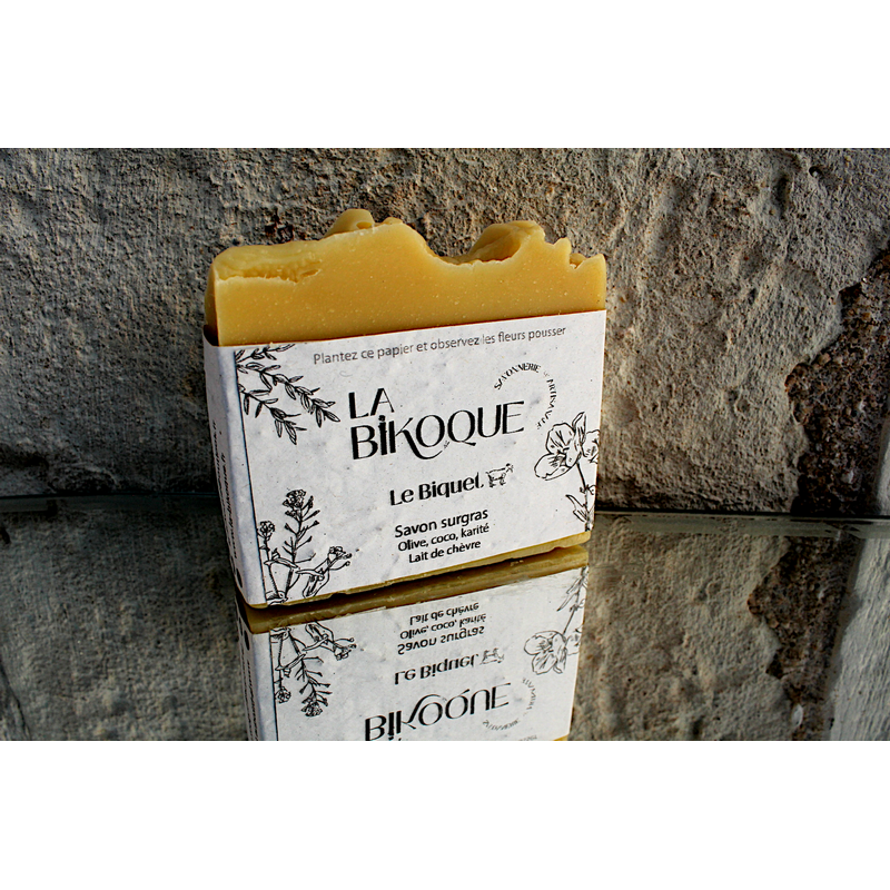 A base de lait de chèvre, ce savon contient des huiles végétales d'olive, coco et du karité.