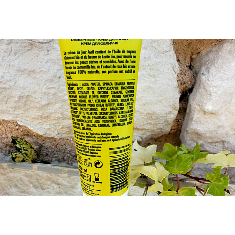 Les ingrédients phares : huile de noyau d'abricot BIO (antioxydante), beurre de karité BIO (nourrissant), eau florale de camomille romaine.